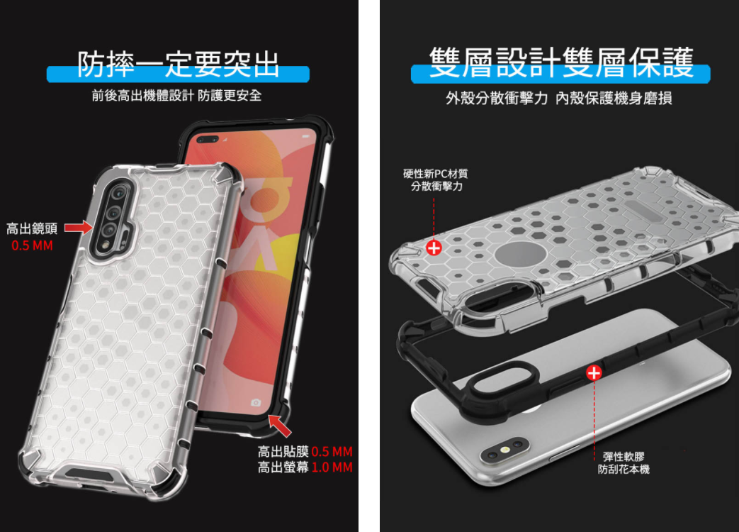 四角均加厚軟邊、增加防摔力